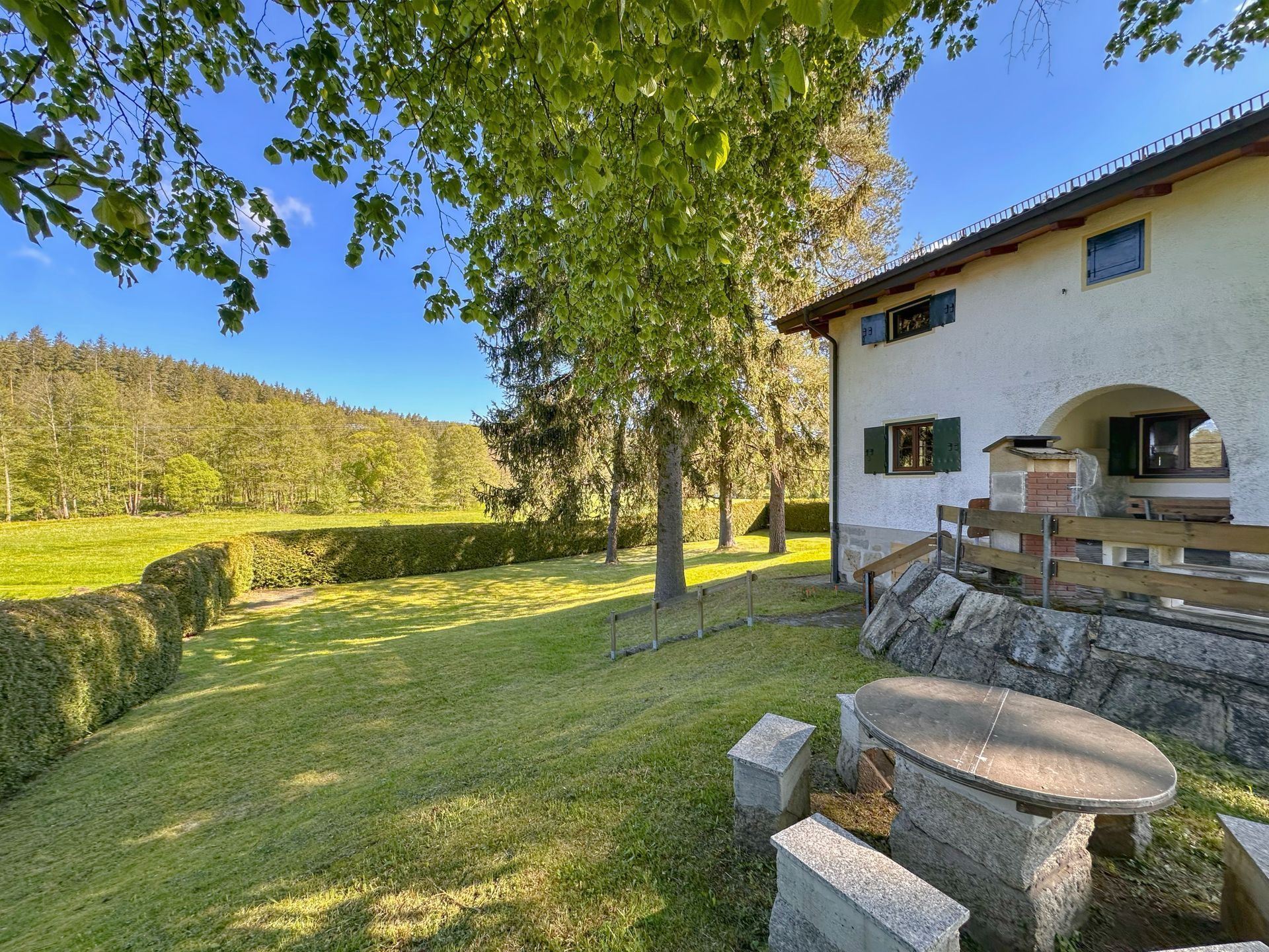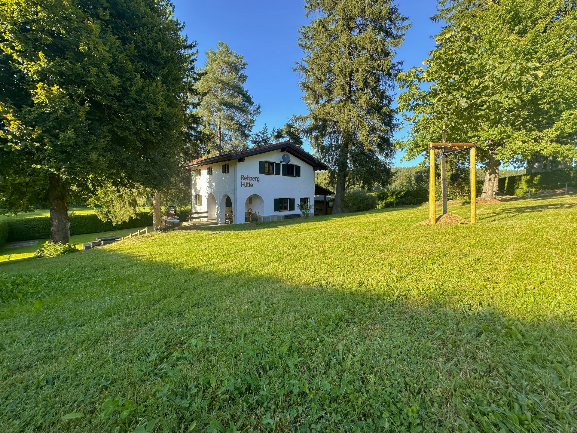 Die Rehberg Hütte liegt im malerischen Zottbachtal im Oberpfälzer Wald, im idyllischen Ortsteil Unterrehberg bei Georgenberg. Am Ortsrand in ruhiger Alleinlage erwartet Sie ein Ferienhaus, wie man es sich nur wünschen kann: eingebettet in ein über 2.000 m² großes Grundstück, das vollständig eingezäunt ist. Ein alter, schattiger Baumbestand verleiht dem Anwesen eine besondere Atmosphäre, während absolute Ruhe und viel Platz für Erholung sorgen.